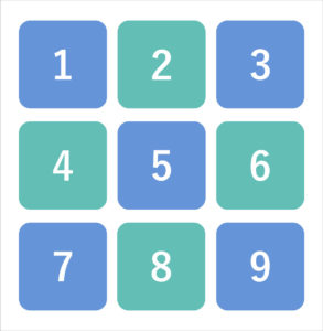今回は最大9個のレイアウトだったので左端は 1,4,7で決め打ちしました。