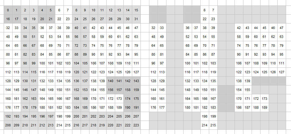 全部で16×14の224マス。そのうち画像が入るのは108マス。